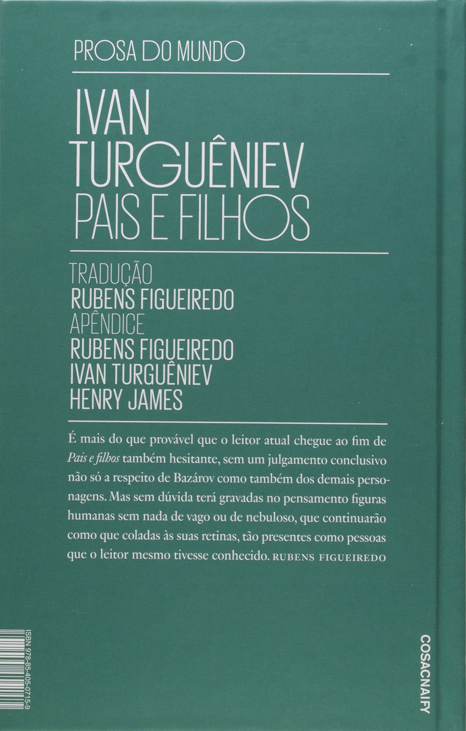 Traduzido pela primeira vez diretamente do russo para o português, este clássico é responsável por uma das maiores polêmicas da literatura russa. No início da década de 1860, dois eventos transformaram significativamente a sociedade russa: o fim da servidão e a fundação do movimento Terra e Liberdade, organização secreta que lutava contra as autoridades e instituições oficiais. A abordagem desse contexto fez com que Pais e filhos despertasse uma das maiores fendas da história da literatura russa. O termo "niilista" se popularizou e Ivan Turguêniev (1818-1883) foi acusado de ser responsável por atos criminosos cometidos por radicais influenciados por sua obra. Na trama, o jovem Arkádi Nikolaitch, acompanhado de seu amigo e mentor Bazárov, volta à propriedade de sua família após formar-se na universidade. Bazárov é um personagem singular: despreza qualquer autoridade, é antissocial e se autoproclama um "niilista". Suas convicções contrastam com os modos aristocráticos da família de Arkádi, provocando um conflito entre gerações.